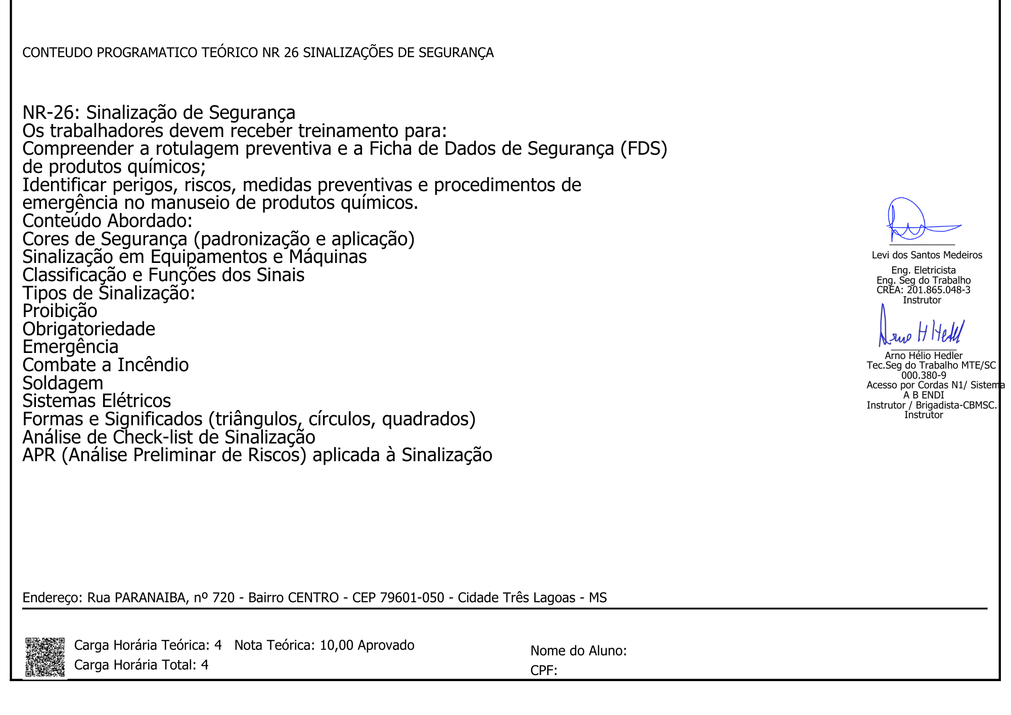 Certificado digital após conclusão seguindo todas as normas da NR-01 para treinamentos EAD.